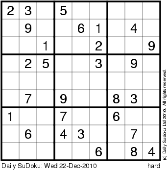 The Daily SuDoku: Wed 22-Dec-2010