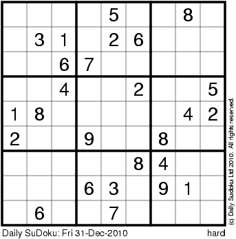 The Daily SuDoku: Fri 31-Dec-2010