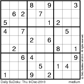 The Daily SuDoku: Thu 9-Dec-2010