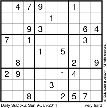 The Daily SuDoku: Sun 9-Jan-2011