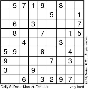 The Daily SuDoku: Mon 21-Feb-2011