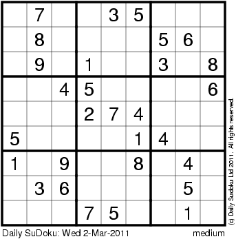 The Daily SuDoku: Wed 2-Mar-2011