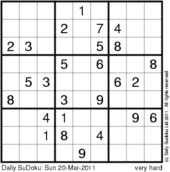 The Daily SuDoku: Sun 20-Mar-2011
