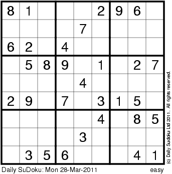 The Daily SuDoku: Mon 28-Mar-2011