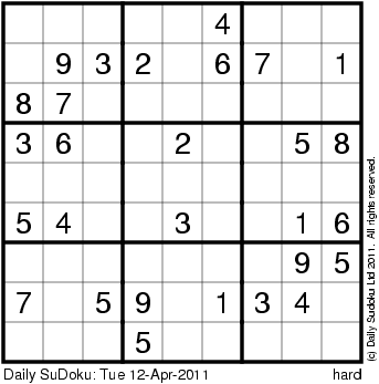 The Daily SuDoku: Tue 12-Apr-2011