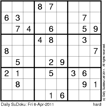 The Daily SuDoku: Fri 8-Apr-2011