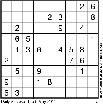 The Daily SuDoku: Thu 5-May-2011