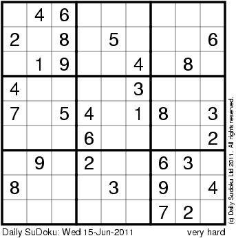 The Daily SuDoku: Wed 15-Jun-2011
