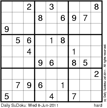 The Daily SuDoku: Wed 8-Jun-2011