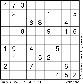 The Daily SuDoku: Fri 1-Jul-2011