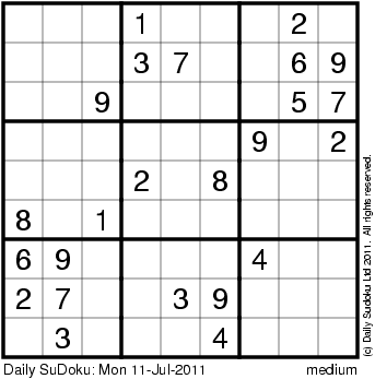 The Daily SuDoku: Mon 11-Jul-2011