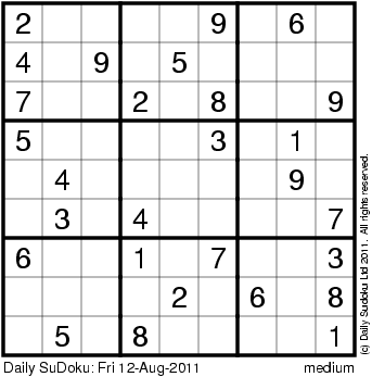 The Daily SuDoku: Fri 12-Aug-2011