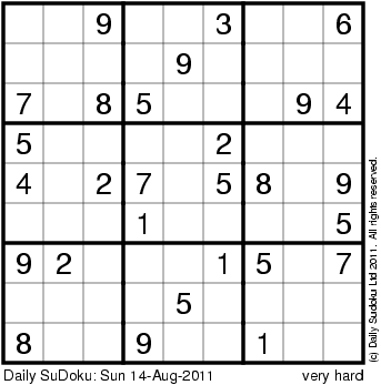 The Daily SuDoku: Sun 14-Aug-2011
