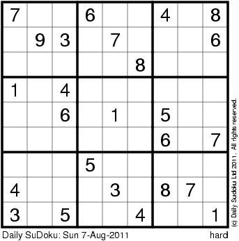 The Daily SuDoku: Sun 7-Aug-2011