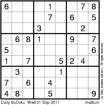 The Daily SuDoku: Wed 21-Sep-2011