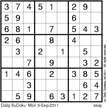 The Daily SuDoku: Mon 5-Sep-2011