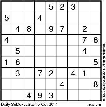 The Daily SuDoku: Sat 15-Oct-2011