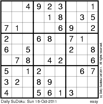 The Daily SuDoku: Sun 16-Oct-2011