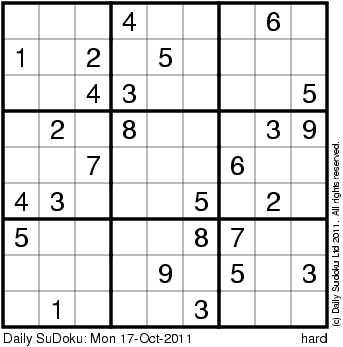 The Daily SuDoku: Mon 17-Oct-2011