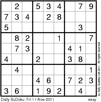 The Daily SuDoku: Fri 11-Nov-2011