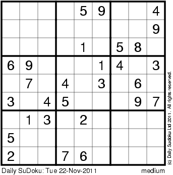 The Daily SuDoku: Tue 22-Nov-2011