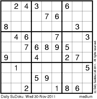 The Daily SuDoku: Wed 30-Nov-2011