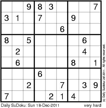 The Daily SuDoku: Sun 18-Dec-2011