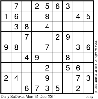 The Daily SuDoku: Mon 19-Dec-2011