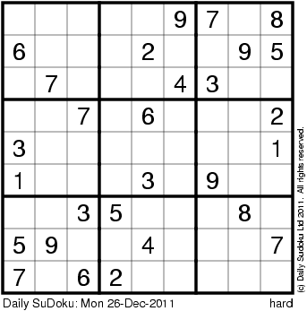 The Daily SuDoku: Mon 26-Dec-2011