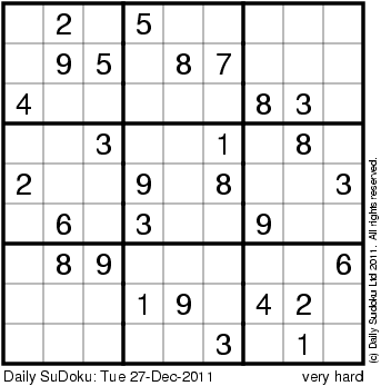 The Daily SuDoku: Tue 27-Dec-2011