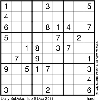The Daily SuDoku: Tue 6-Dec-2011