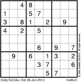 The Daily SuDoku: Sat 28-Jan-2012