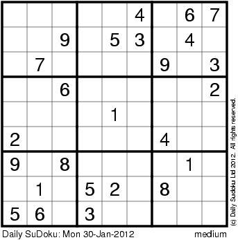 The Daily SuDoku: Mon 30-Jan-2012