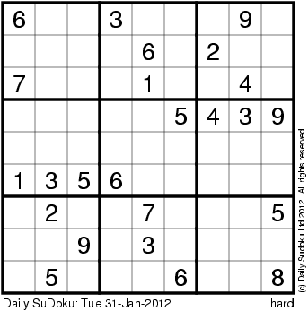 The Daily SuDoku: Tue 31-Jan-2012