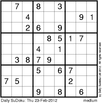 The Daily SuDoku: Thu 23-Feb-2012