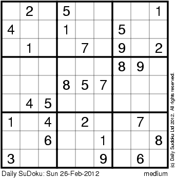 The Daily SuDoku: Sun 26-Feb-2012
