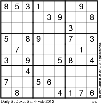 The Daily SuDoku: Sat 4-Feb-2012