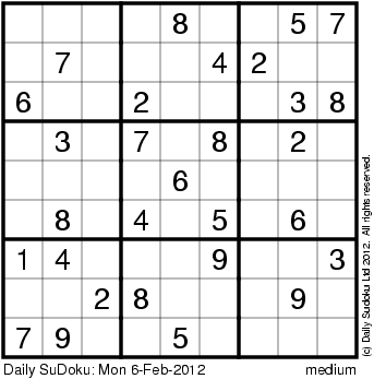 The Daily SuDoku: Mon 6-Feb-2012