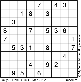 The Daily SuDoku: Sun 18-Mar-2012