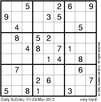 The Daily SuDoku: Fri 23-Mar-2012