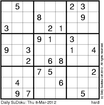The Daily SuDoku: Thu 8-Mar-2012