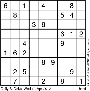 The Daily SuDoku: Wed 18-Apr-2012