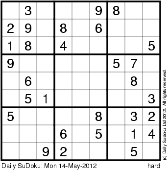 The Daily SuDoku: Mon 14-May-2012
