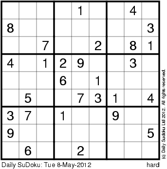 The Daily SuDoku: Tue 8-May-2012