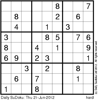 The Daily SuDoku: Thu 21-Jun-2012
