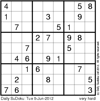 The Daily SuDoku: Tue 5-Jun-2012