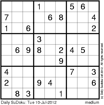 The Daily SuDoku: Tue 10-Jul-2012
