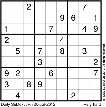 The Daily SuDoku: Fri 20-Jul-2012