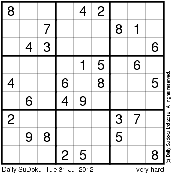 The Daily SuDoku: Tue 31-Jul-2012