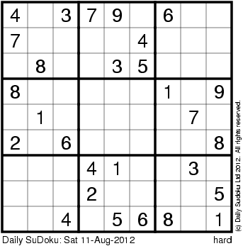 The Daily SuDoku: Sat 11-Aug-2012